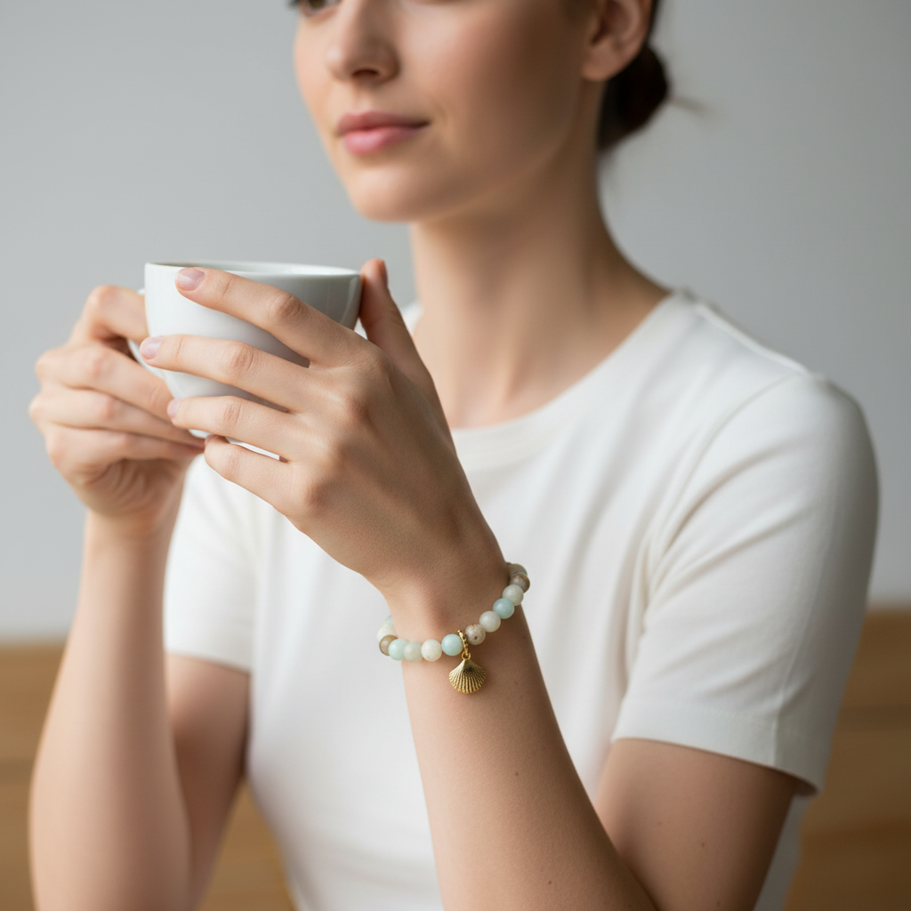 The gold-plated shell charm symbolizes renewal, feminine softness, and the flow of life. It reminds you to stay open to new beginnings and trust your natural rhythm.