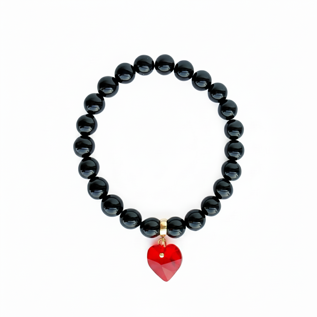 Materials: Natural Onyx (8 mm), red Swarovski heart, gold-plated 925 silver bail, stretch cord