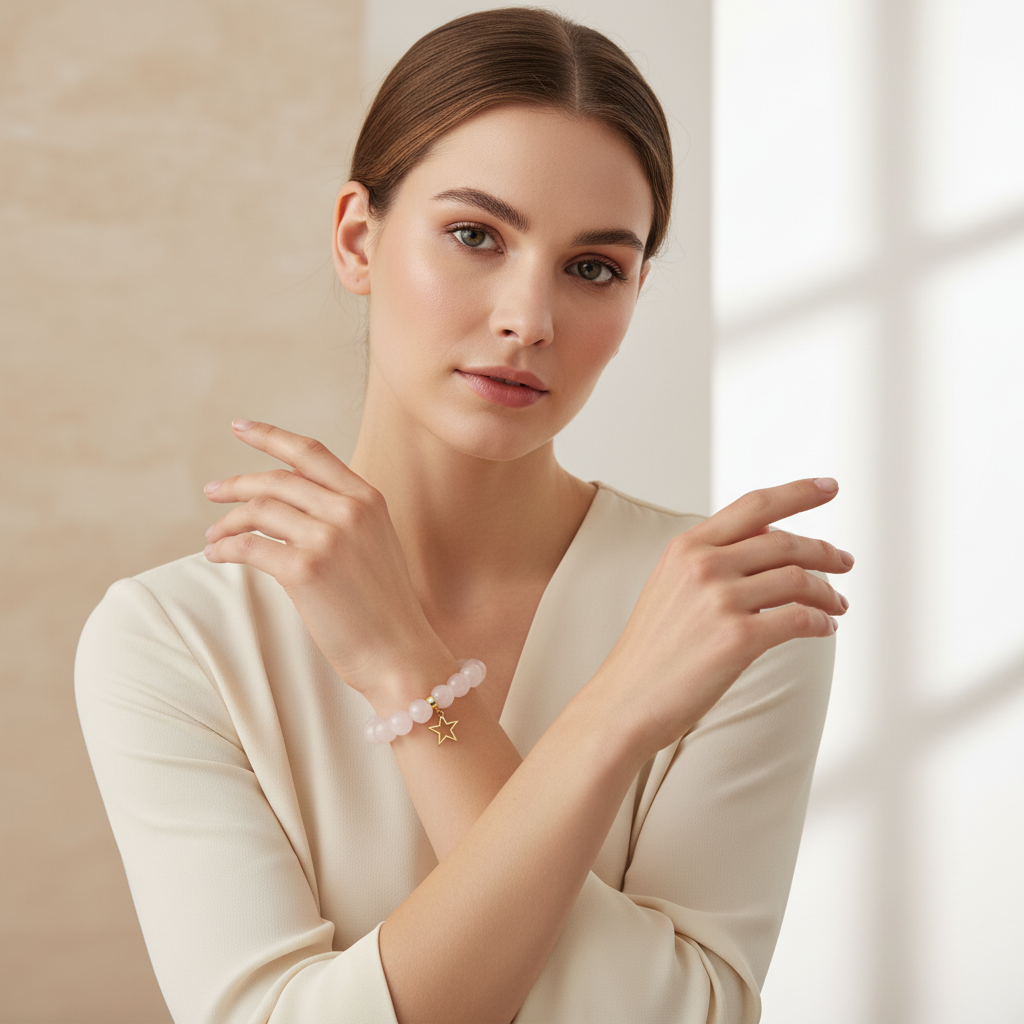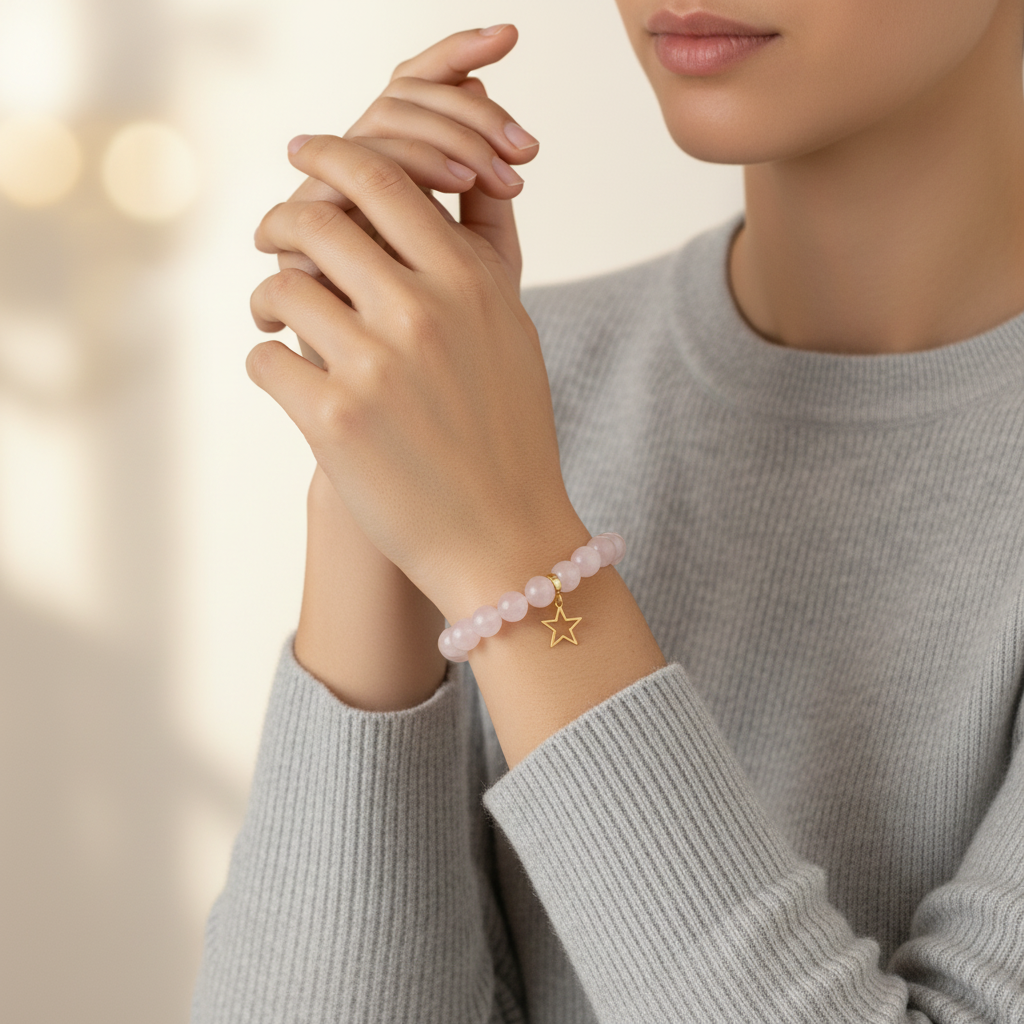 Rose Quartz Bracelet with Star Charm