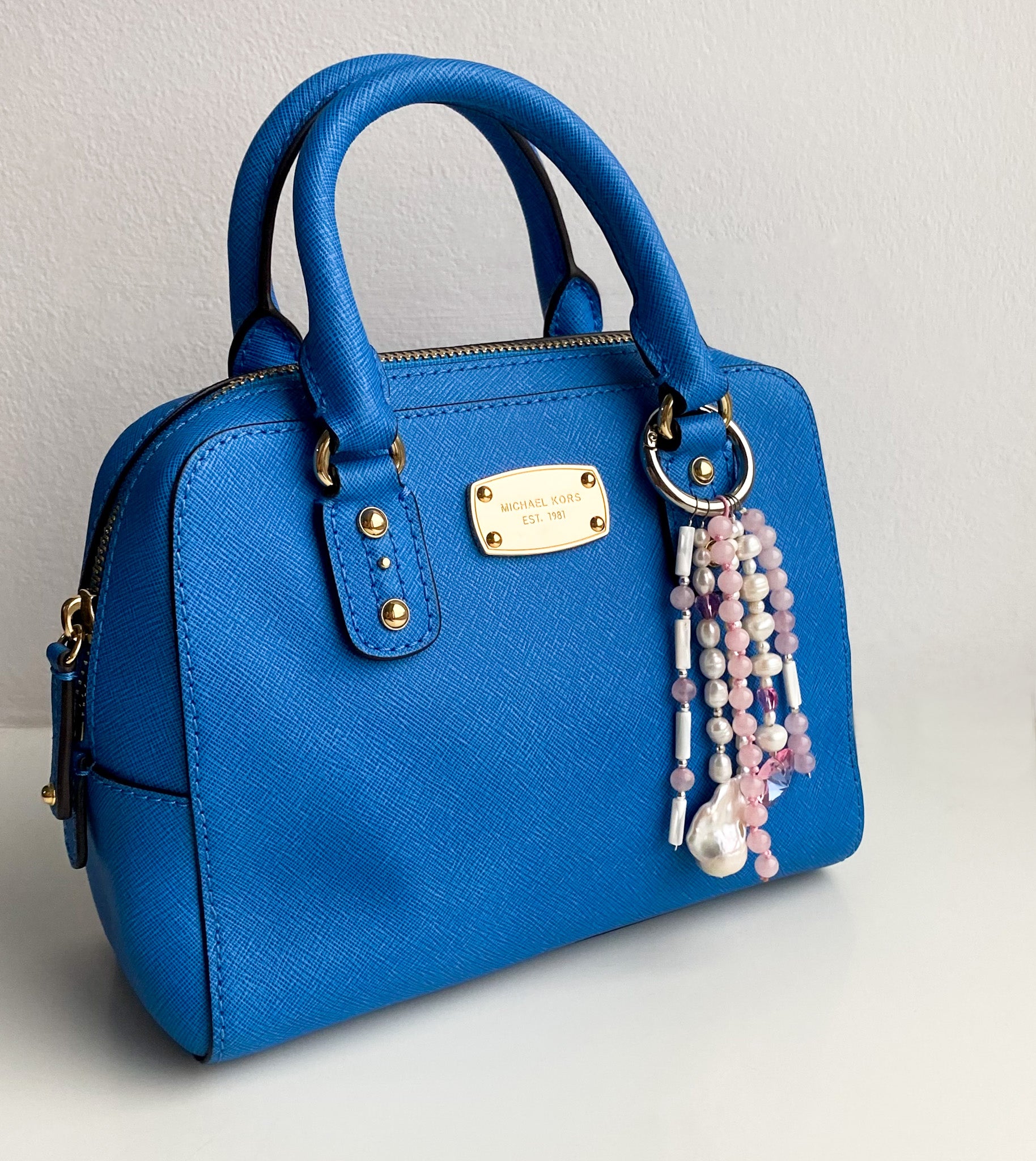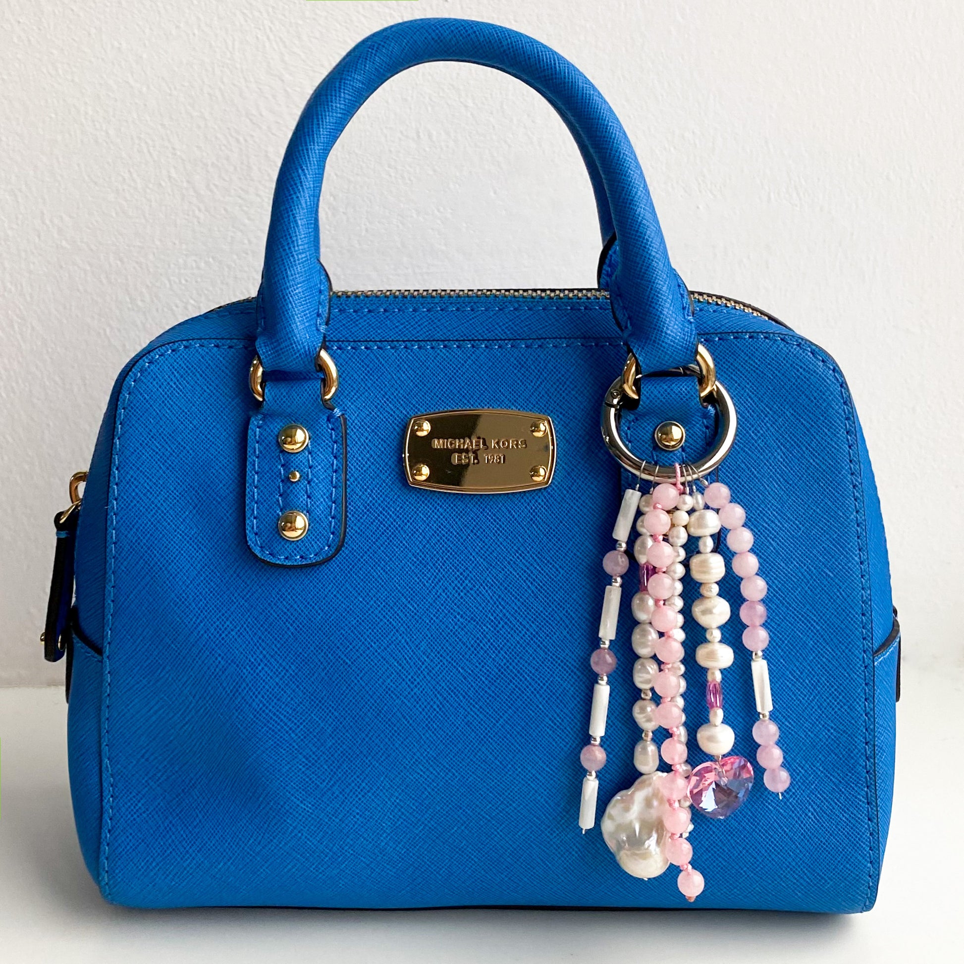 Rose Quartz & Pearl Bag Charm – Baroque Pearl & Swarovski Hearts